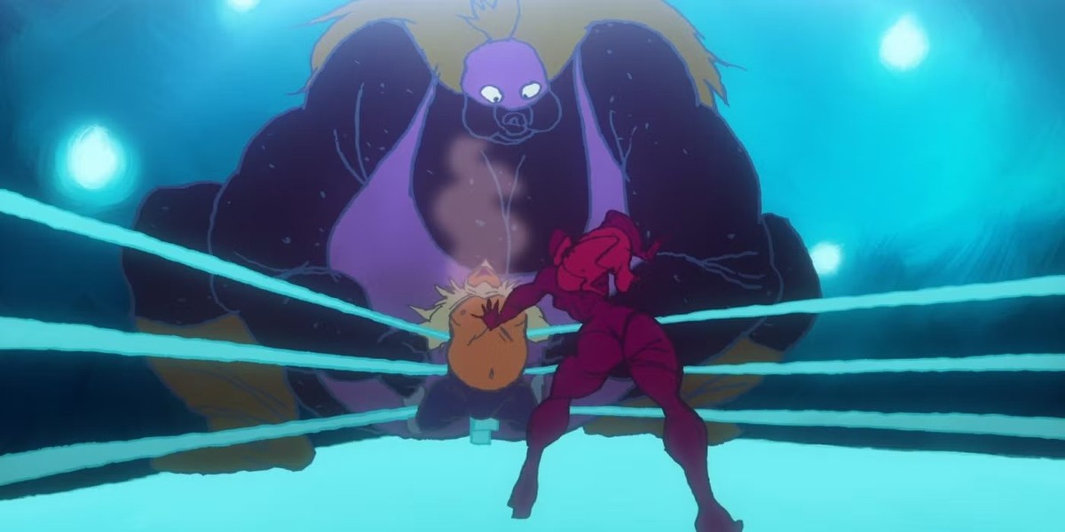 Порой анимацию спонсируют не большие студии и влиятельные продюсеры, а сами зрители. Один из примеров, когда народная любовь помогла осуществиться проекту, сегодня и предлагает вспомнить аниме-канал «Покебол с предсказанием». Речь о «Пинке в сердце» Масааки Юасы, на время оказавшийся в стенах Production I.G («Волейбол!», «Письмо для Момо»). Эмоциональный рестлерский поединок продюсировал легендарный Мамору Осии («Призрак в доспехах»), а режиссер (тогда еще только) «Игр разума» и «Когтей зверя» уместил в 12 минут БДСМ-спокон с шекспировской душой.. Трибуны шумят. Исполинская фиолетовая женщина лупцует по груди лучадора в синей маске. Это Ромео, известный на ринге под именем «Маска М». Стандартный (M for medium) герой маскулинного нарратива — не плаща и шпаги, так трусов и прыжков. И вот он пропускает критический пинок обувью на высоком каблуке: не от фиолетовой женщины, а её напарницы — легендарной Госпожи С. Затянутой в красный латекс — воплощение эроса со страниц бульварного чтива. На
