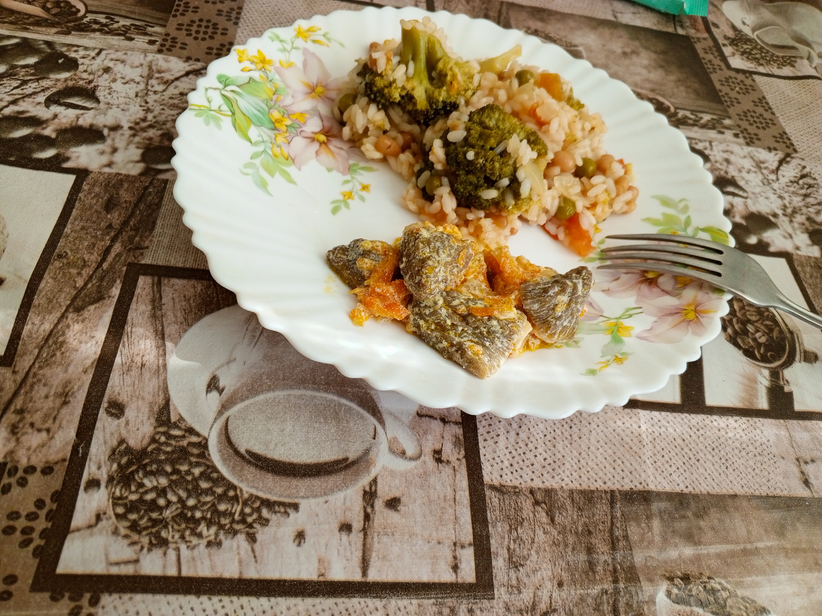 Рецепт сморчковой шапочки в сметанном соусе. На гарнир - оригинальное ризотто из смеси овощей