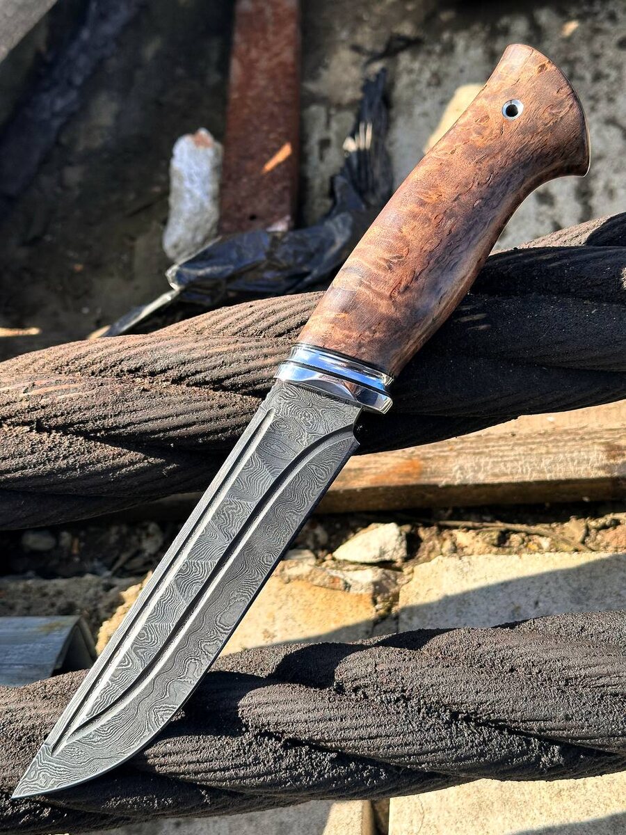 Из разряда "Просто и со вкусом" Нож Овод из дамасской стали с обработкой клинка под камень и фигурными долами, с рукоятью из стабилизированной карельской берёзы коричневой. Сталь имеет агрессивный рез, долго держит заточку. Ножны в комплекте. Цена ножа по акции по 30 апоеля 14000 руб. Обычная цена 22500 руб. Можем изготовить формованные ножны из кожи растительного дубления (+ 8000 руб.) Для заказа писать на @Nazarklinokbot или по тел +79101343831, WhatsApp