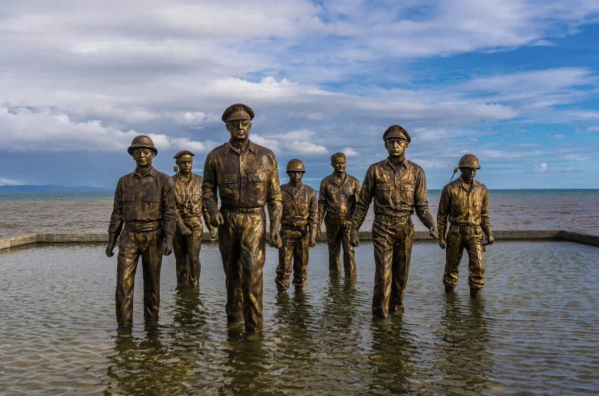 Мемориал высадки в Лейте посвящен жизненно важному моменту битвы за Лейте во Второй мировой войне, а именно высадке американских войск. Мемориал Лейте-Лэндинг расположен в том же месте, где генерал Дуглас Макартур возглавил американские освободительные войска на Красный пляж в Пало на Филиппинах. Битва за Лейте, часть Тихоокеанской кампании, началась 17 октября 1944 года, когда американские и австралийские войска вместе с филиппинскими партизанами вторглись и захватили этот район у японцев. Когда американские войска были вынуждены поспешно отступить с Филиппин в декабре 1941 года, контроль над этим районом перешел к вторгшимся японцам. Генерал Дуглас Макартур произнес знаменитую фразу: «Я вернусь». Филиппины пережили три года жестокой оккупации, но 20 октября 1944 года американские войска вернулись во главе с генералом Макартуром. Знаменитые кадры показывают, как Макартур по колено в воде идет по Красному пляжу в Пало, в 10 км к югу от Таклобана, в сопровождении группы высокопоставленн