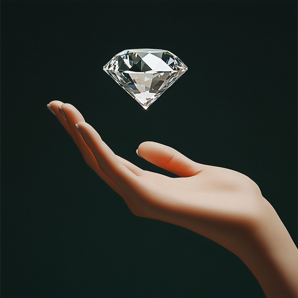 Создано на основе запроса: woman’s hand with a diamond floating above it, realistic, ultra hd