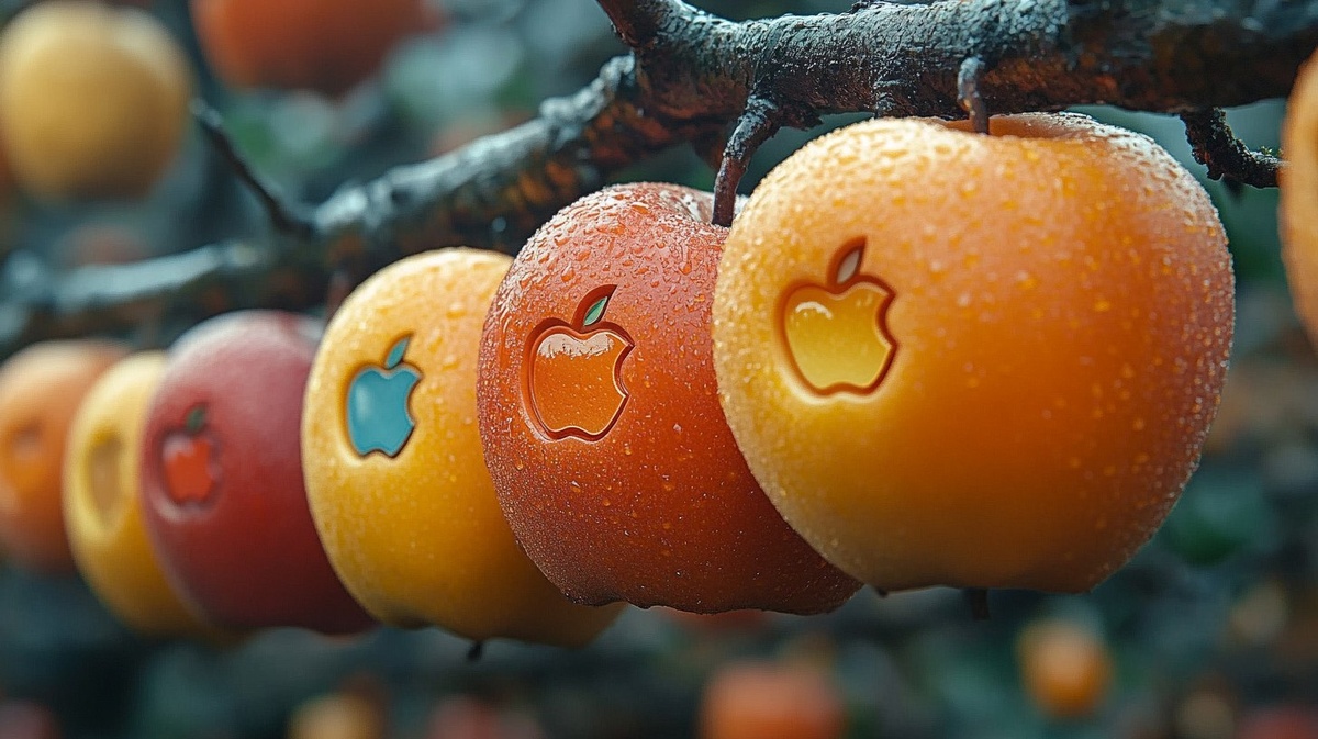 Создано на основе запроса: Social media logos (facebook, pinterest, apple, whatsapp) logos embossed on the skin of the fruit, High detail