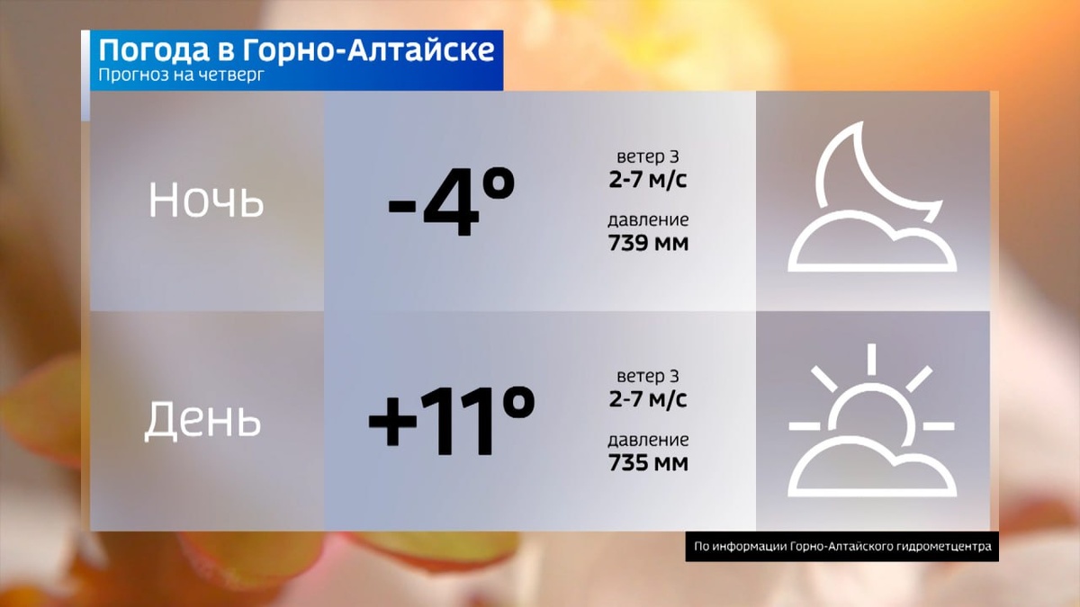 ☀️☀️☀️ Горно-Алтайск: ⛅️Сегодня ночью и завтра днем облачно с прояснениями, преимущественно без осадков, ветер слабый, Температура воздуха 🌡 ночью минус 3…5 °С, днем плюс 10…12 °С. По республике: ⛅️Сегодня ночью и завтра днем облачно с прояснениями, преимущественно без осадков, ветер слабый, местами порывистый до 12 м/с, Температура воздуха 🌡 ночью минус 1…6 °С, местами минус 9…14 °С, днём плюс 10…15 °С, местами 0…плюс 5 °С. #погода 👍 Подписывайся на Вести Эл Алтай