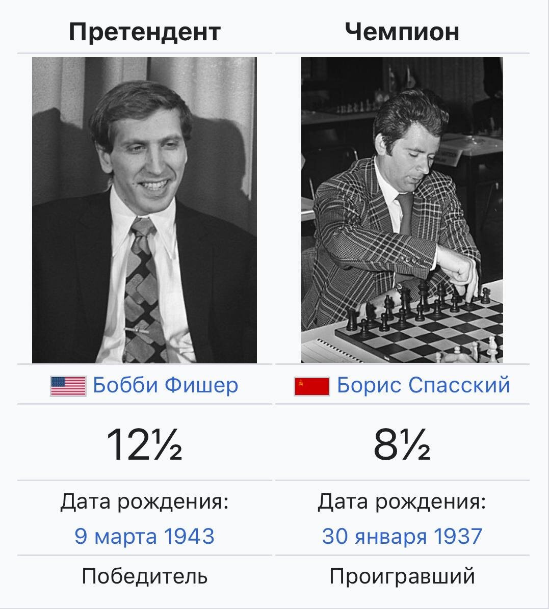🔤🔤🔤🔤🔤 0 (Партия просто не состоялась, но вошла в список мировых шахматных рекордов😁 Вот такой сегодня вопрос с подвохом!) Когда, в 1972 году в Рейкьявике, Борис Спасский играл с Робертом Фишером, их вторая партия была признана самой короткой в матчах за звание чемпиона мира, так как Фишер просто не пришел. Стрелка часов совершила за час свой оборот, флажок упал и счет стал 2:0 в пользу чемпиона мира.😁 Был, впрочем, шанс, что этот своеобразный рекорд повторится: Мудрый Михаил Таль, к тому же блестящий психолог-практик, всячески рекомендовал Спасскому и его секундантам — Е. Геллеру, будущему доктору психологических наук А. Крогиусу и И. Нею — не явиться на третью партию, «возвратив» Фишеру очко по принципу «с нищих не берем!» 😁😁 Третью партию Спасский проиграл «нормально», шахматная история пошла своим чередом.