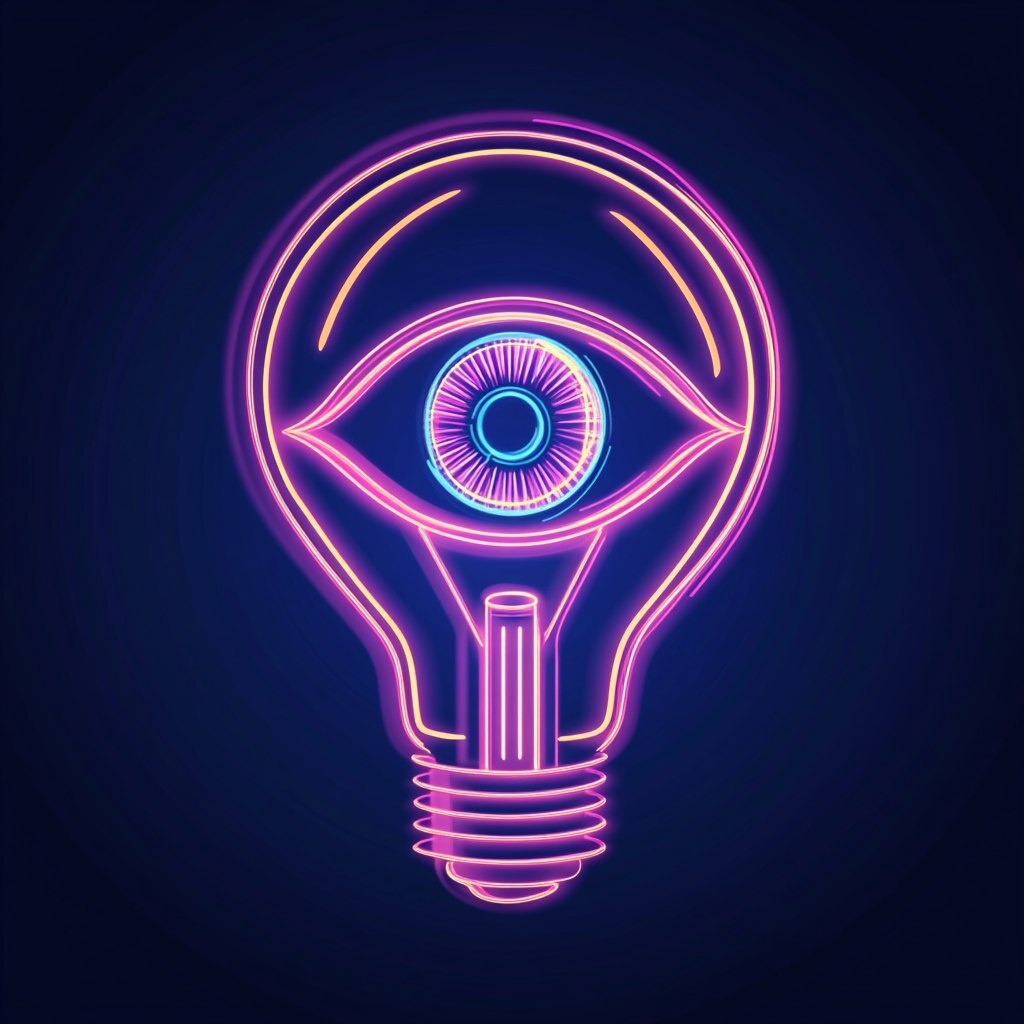 Создано на основе запроса: cyber punk vector logo of eye light bulb neon outline