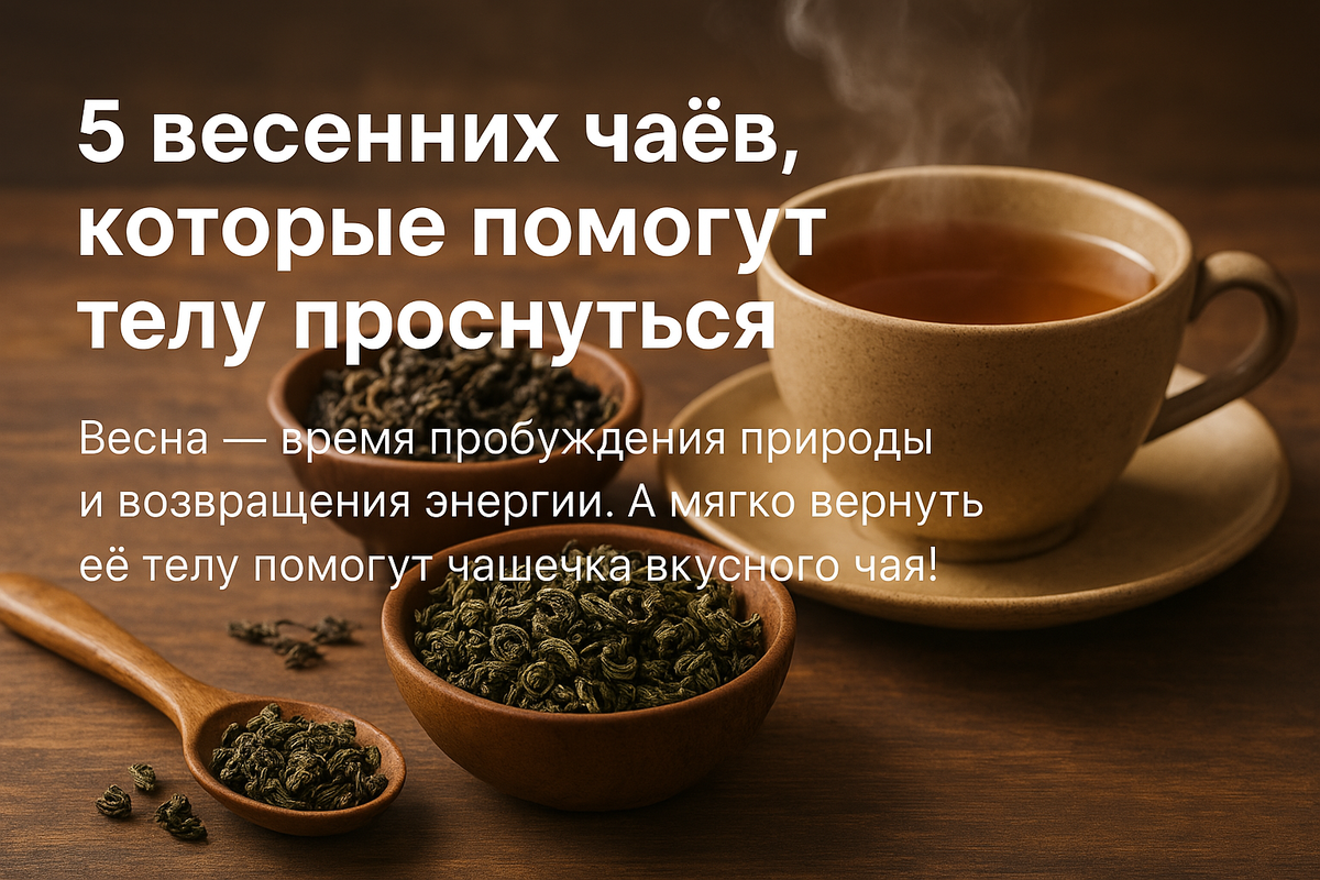 Весна — это не только про пение птиц и первые тёплые лучи солнца. Это ещё и про настройку организма на новый ритм. После зимней спячки телу нужно время, чтобы "включиться" без стресса и спешки. И чай — один из самых мягких, красивых и действенных способов пробуждения. Вот пять весенних чаёв, которые помогут телу проснуться — деликатно, с удовольствием и со вкусом ⬇️ Матча — это зелёный чай в виде порошка, который взбивают до пены. Цвет — яркий, почти неоново-зелёный. Аромат — свежий, чуть травяной. Настоящая весна в чашке. Эффект: мягкий и продолжительный прилив энергии, концентрация, бодрость без кофеинового "качеля". Когда пить: утром или днём, особенно перед делами, которые требуют фокуса. Можно с растительным молоком — получится матча-латте. Улун занимает золотую середину между чёрным и зелёным чаем. Его вкус — мягкий, сливочный, иногда с нотками орхидеи или печёных фруктов. Весной особенно хорош улун с цветочными нотами. Эффект: согревает, очищает, восстанавливает внутренний балан