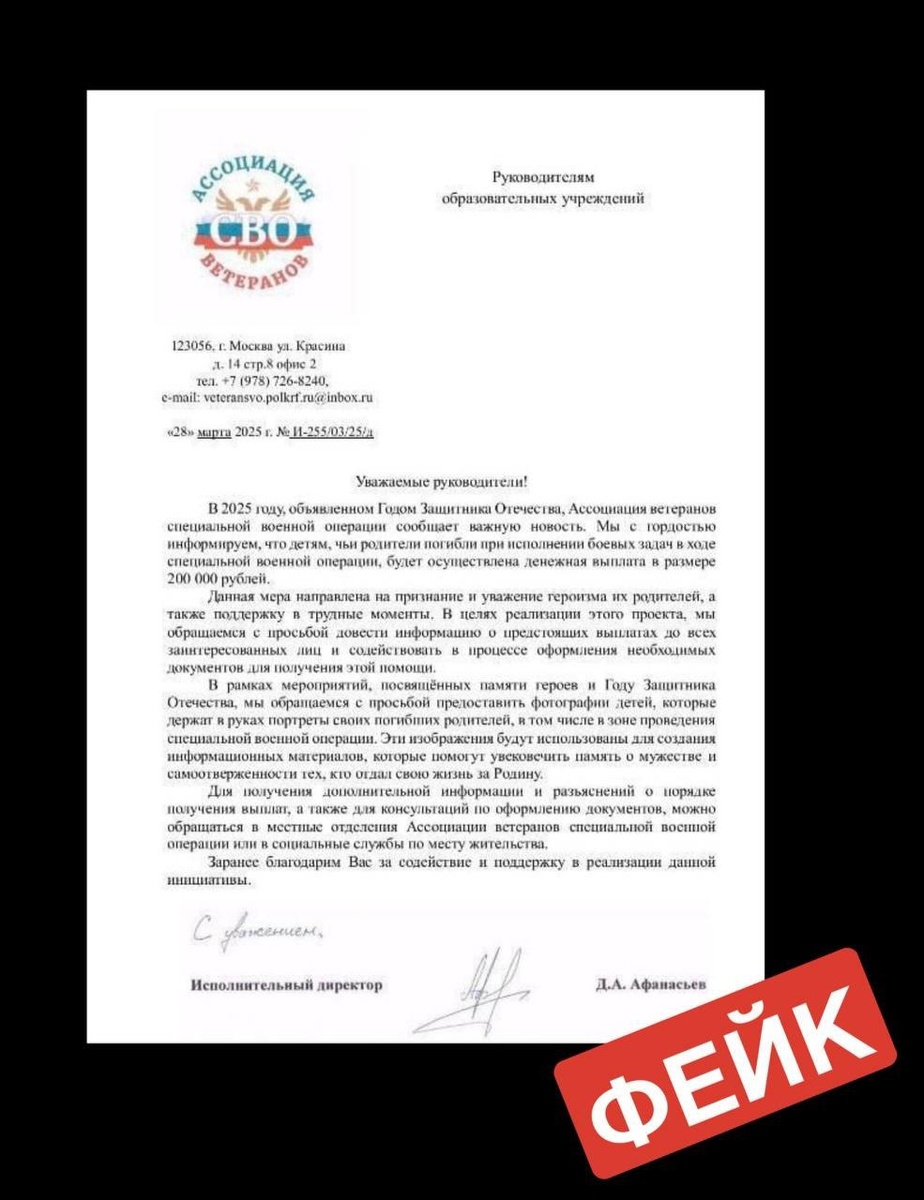 Изобретательные ребята из ЦИПсО снова вышли на охоту за данными. Теперь они – аж целая "Ассоциация ветеранов СВО". Рассылают письма с обещанием 200 000 ₽ детям погибших. 🥹