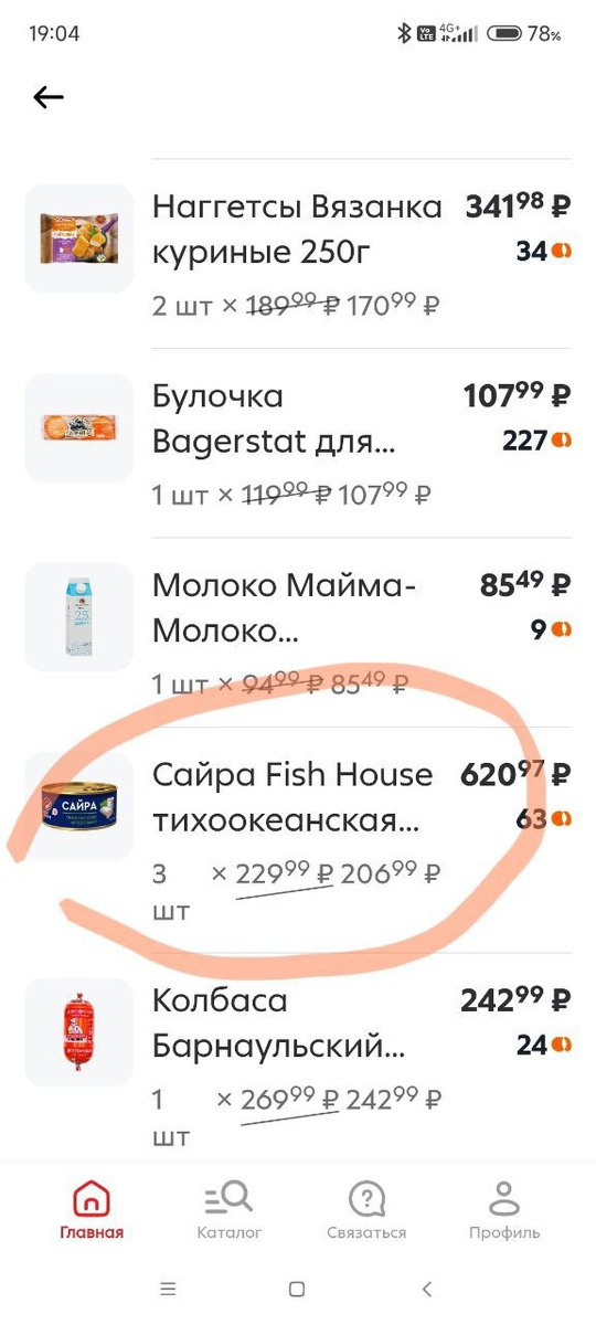 Пятёрочка на ПАТП, брал две банки сайры, пробито три, третью кассир наверное для себя посчитала, ещё спросила, чек надо, конечно нет, ловкая тётя Мотя!