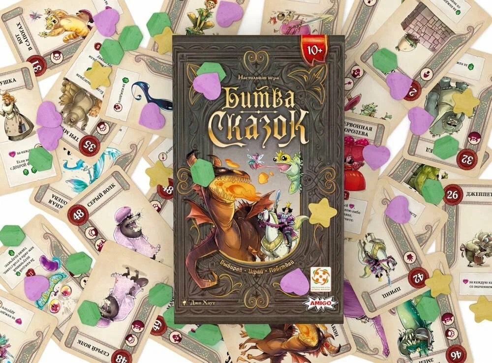 В продаже яркая и задорная новинка с фэнтезийной тематикой — "Битва сказок"! В игре прекрасным образом сочетаются механики закрытого драфта, как в игре "7 Чудес" и одна из самых популярных на сегодня механик - игра на взятки.
