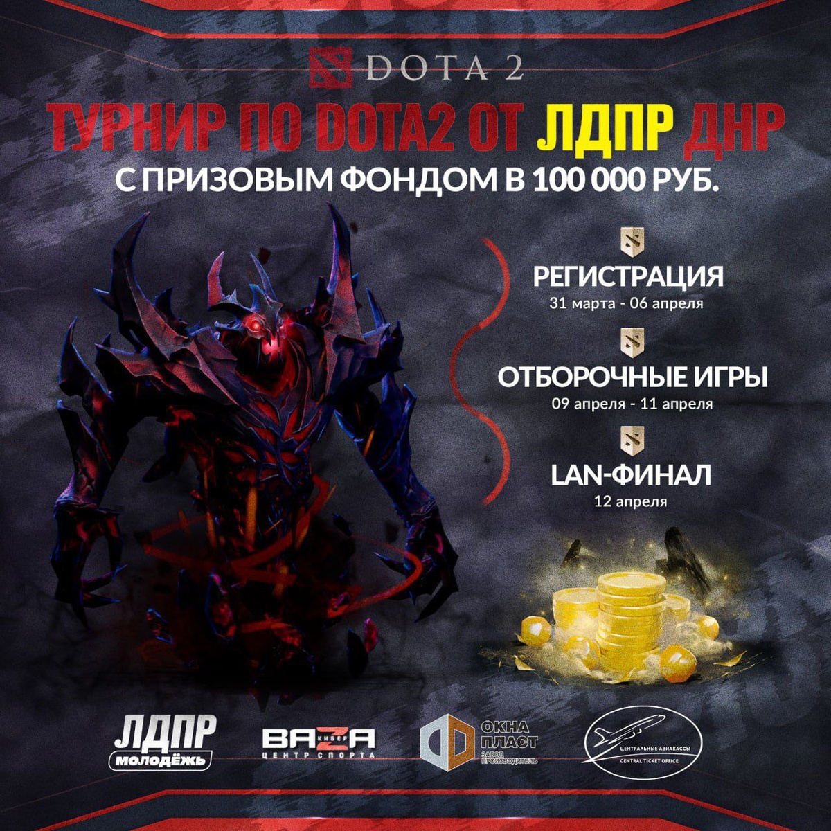 Молодёжь ЛДПР Dota 2 «Донецк» 2025 — пора выходить на уровень! 🔹Мы запускаем первый турнир по Dota 2 от ЛДПР в Донецке! Это твой шанс выйти на новый уровень. Собери команду, покажи скилл и сразись за призовой фонд 100 000 ₽! 🔹Регистрация открыта с 31 марта по 6 апреля. Собери пятёрку, заяви о себе и выйди на большую сцену! Не упусти шанс стать частью киберспортивной революции! 🔹Залетай сюда, чтобы подать заявку (тык сюда*) 🔹Все апдейты, анонсы и анонс сетки турнира — в нашем канале Молодежь ЛДПР ДНР 🔹Время пришло. Пора выйти на уровень! #ЛДПР_Dota2_Донецк #ЛДПРеСПОРТС #киберспорт #Dota2 #ЛДПРтурнир #ДНР