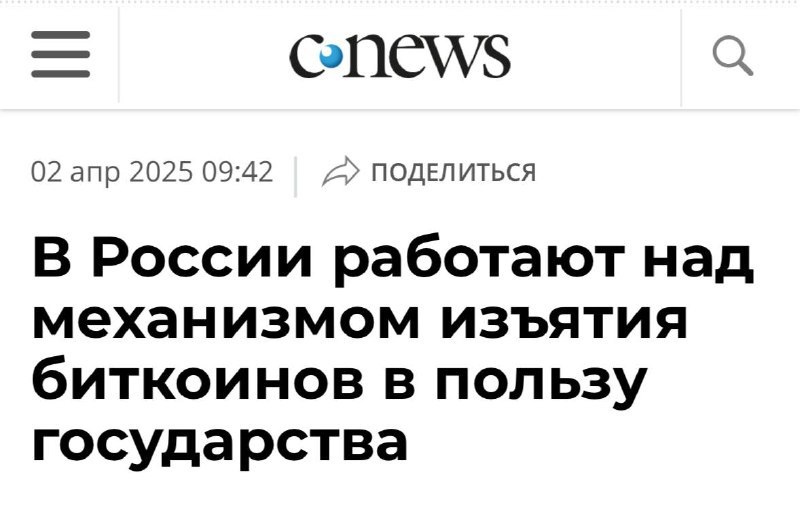 ⚡️ В России готовят механизм для ОТЪЁМА крипты — приставы уже тестируют, как конфисковывать цифровые активы по закону. Раньше с этим были траблы: битки не считались официальным имуществом, а значит — и забрать их было нельзя. Но всё изменилось после дела экс-главы СК, где на кону внезапно всплыл миллиард рублей в крипте. Теперь планируют забирать монетки не только у взяточников, но и у трейдеров и майнеров, если нарушат закон. Век децентрализации оказался недолгим. Подробнее: https://hard-tm.su/threads/84161/ 🕹HARD-TM — Подписаться