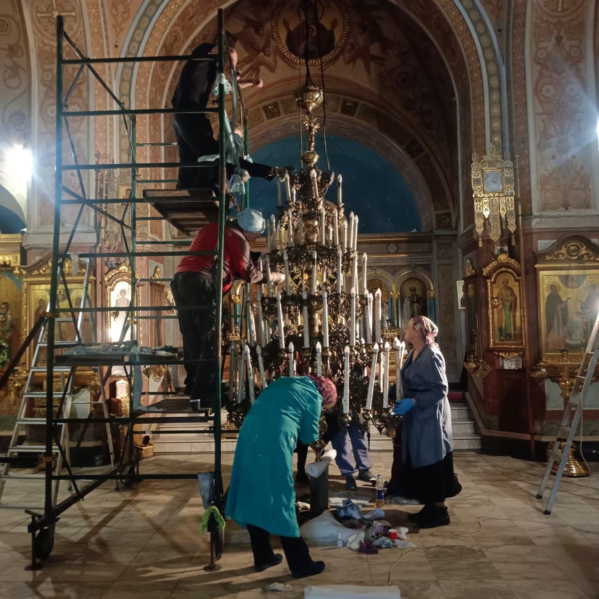 Прихожане нашего храма и молодежное движение "Знаменцы" приняли активное участие в чистке паникадила, мощевика и аналоев храма