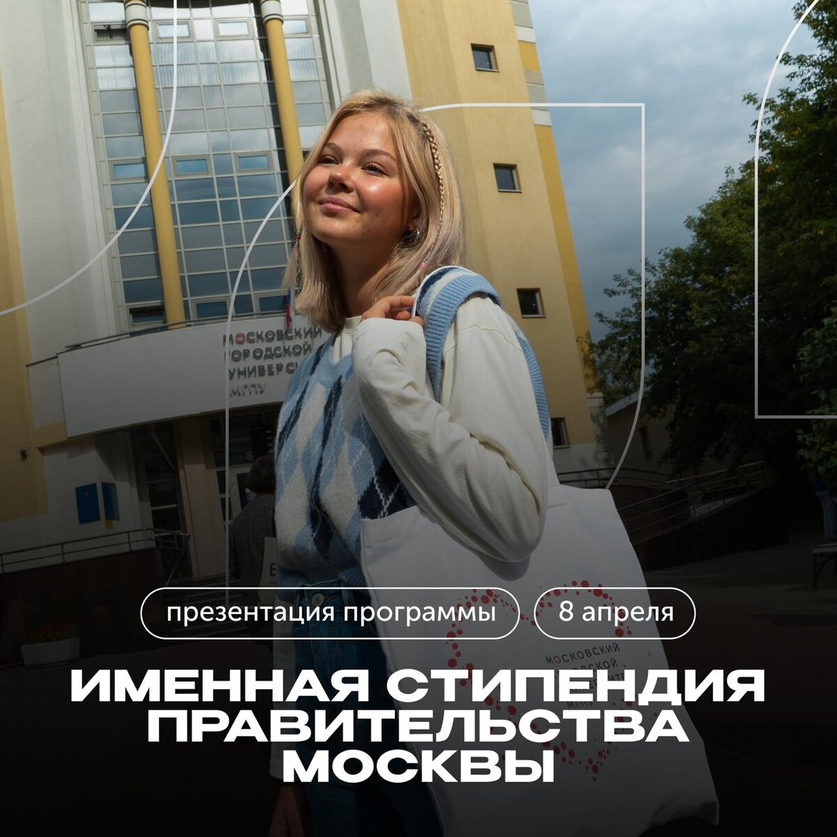 Приглашаем на презентацию программы «Именная стипендия Правительства Москвы» ⚡️ 📌 08 апреля в 17:00 📌 Очно: проспект Мира, 81, конференц-зал коворкинга МГПУ 📌 Онлайн: ссылка на VK-звонок Что получают участники программы? Материальное поощрение, практики и стажировки, участие в лучших проектах города, знакомства и не только. Регистрируйтесь и приходите/подключайтесь ❤️