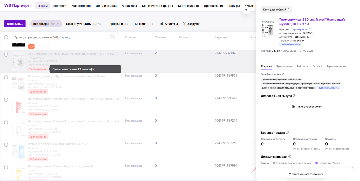 Я работаю с Wildberries не первый год. Ассортимент — большой, всё отлажено: карточки оформлены, реклама настроена, продажи идут. Ранее использовалась дополнительная услуга, позволявшая расширить лимит на количество карточек. С её помощью я спокойно размещал десятки тысяч товаров.