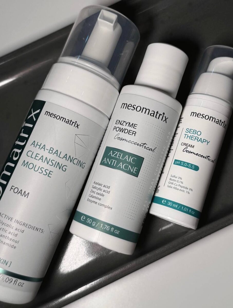 делюсь любимыми продуктами от бренда профессиональной косметики Mesomatrix👇 🤍 энзимная пудра с кислотами 💐идеально подходит для жирной кожи 🌸мягко отшелушивает, устраняет следы постакне 💐очищает и сужает поры, а также регулирует выработку себума 🤍 крем для лица sebo therapy 🌸содержит трипептид меди, стимулирующий синтез коллагена и био-салицилат, обладающий противовоспалительными свойствами 💐сужает поры, подавляет патогенную микрофлору 🤍 пенка для умывания с AHA кислотами 💐в составе д-пантенол, ниацинамид, гликолевая, гиалуроновая и молочная кислоты 🌸имеет нежную текстуру 💐хорошо очищает, при этом не стягивая кожу знакомы с брендом? что хотели бы попробовать?✨