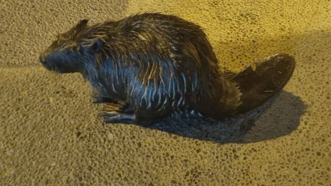 В Ленобласти молодой бобер деловито уходил по дороге в самостоятельную взрослую жизнь