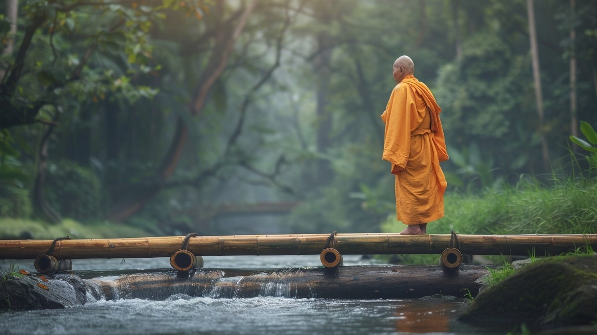 Создано на основе запроса: a deeply wise and compassionate elderly Zen Buddhist monk, around 90 years old, walking slowly across a small bamboo bridge over a gentle stream, forest background, tranquil atmosphere, wearing traditional orange monk robe --- Автоперевод: Глубоко мудрый и сострадательный пожилой буддийский монах -дзен, около 90 лет, медленно ходит по маленькому бамбуковому мосту через нежный ручей, лесной фон, спокойная атмосфера, носить традиционную апельсиновую монашкую халату Как тебе такая генерация? 🤔 https://dzen.ru/id/65c0c65c86e4f837c27b24d7 #ИИ #AI #нейросеть #midjourney #art