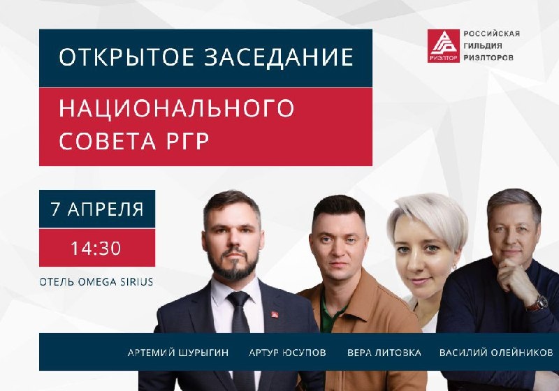 🔔 Приглашаем на Открытое заседание Национального совета РГР, которое состоится на площадке ВЖК в Сириусе. Дата: 7 апреля 2025 Начало заседания в 14:30 Тема: «Эффективный работодатель и руководитель компании в сфере оказания риэлторских услуг» ⤵️ РЕГИСТРАЦИЯ Программа: 14:30 - 15:15 Инструменты и возможности профессионального сообщества для руководителя агентства недвижимости. РГР как общероссийское отраслевое объединение работодателей. Выступающий: Артемий Шурыгин, президент РГР 15:15 - 15:45 Актуальные проблемы найма и удержания сотрудников в агентстве недвижимости. Презентация факультета «Эффективный руководитель» Академии развития РГР. Выступающий: Вера Литовка, спикер Академии, Кубанская палата недвижимости 15:45 - 16:30 Управленческие поединки как форма повышения лидерских компетенций. Выступающий: Василий Олейников, президент Уральской палаты недвижимости 16:30 - 17:00 Перерыв 17:00-18:30 Управленческие поединки (продолжение). Реальные кейсы отработки переговорных навык