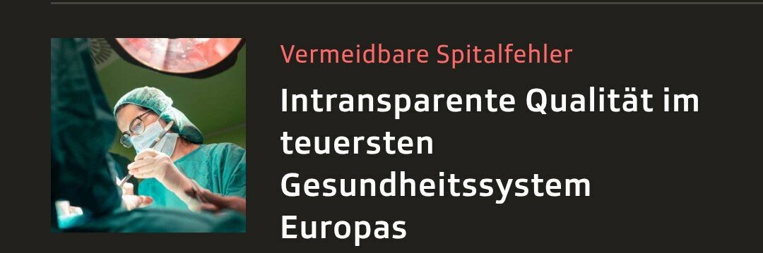 Выбор больницы в Швейцарии остается сложным с точки зрения пациента. Отсутствуют сопоставимые данные о качестве лечения.