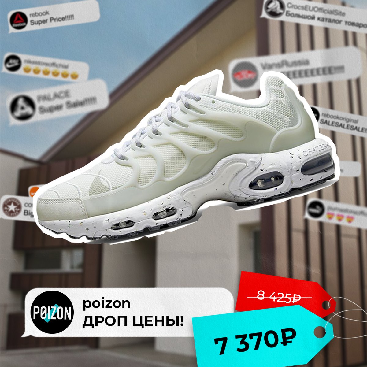 Но вот эти банальные модели нам немного надоели, так что выбираем последнее время актуальные спортивные силуэты. Например, как Nike Air Max Terrascape Plus. Сегодня, кстати, эта модель попала в «Дроп цены», так что прям бинго. Стоимость актуальна только сегодня. Nike Air Max Terrascape Plus, арт. DQ3977-100, цена от 7 370₽* (вместо 8 425₽) *стоимость может изменяться в зависимости от курса и размера Больше интересного на нашем сайте POIZON