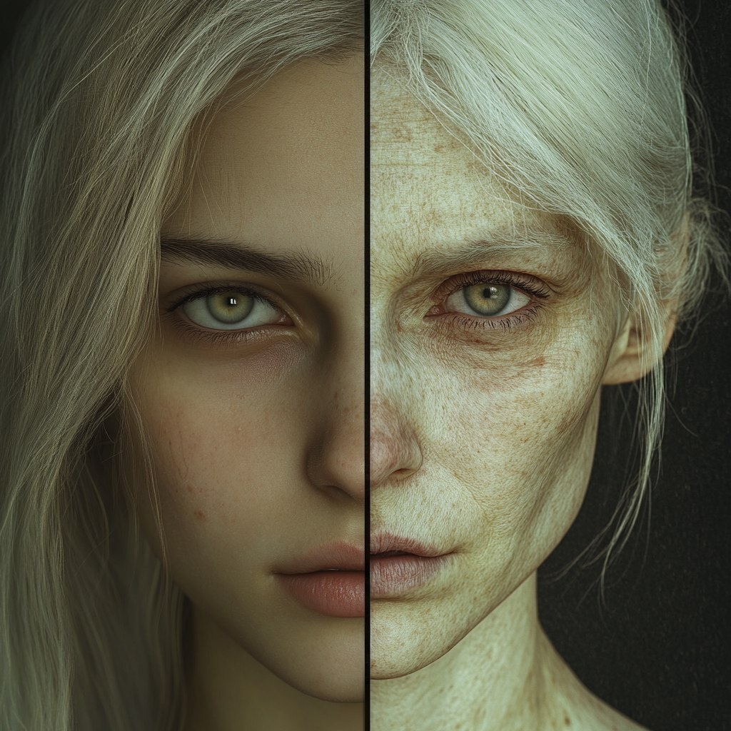 Создано на основе запроса: voglio un morphing: il volto della persona deve essere diviso a metà. metà giovane e bello, metà anziano. con capelli bianchi, rughe. --- Автоперевод: Voglio un Morphing: il olto della persona dever essere diviso a metà. Красиво получилось? 🤔 https://dzen.ru/id/65c0c65c86e4f837c27b24d7 #ИИ #AI #нейросеть #midjourney #art