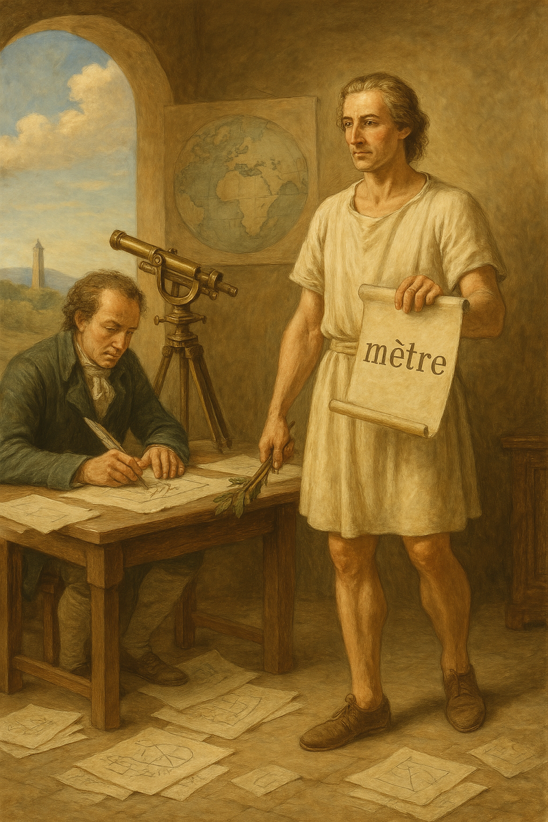 Во времена Французской революции, когда рушились устои старого режима и создавались новые социальные и политические институты, родилась идея о реформе мер и весов — универсальной, логичной и научной системе измерений. Эта идея воплотилась 7 апреля 1795 года, когда Национальный конвент Франции законодательно утвердил метр как основную единицу длины.