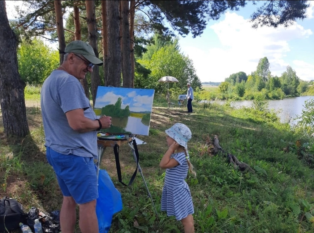 Был летний городской праздник. Были уличные выставки работ художников Полякова и Казанцева. Я подошел к Сергею и попросил его пару слов сказать в кадр. Он в свою очередь сказал:
