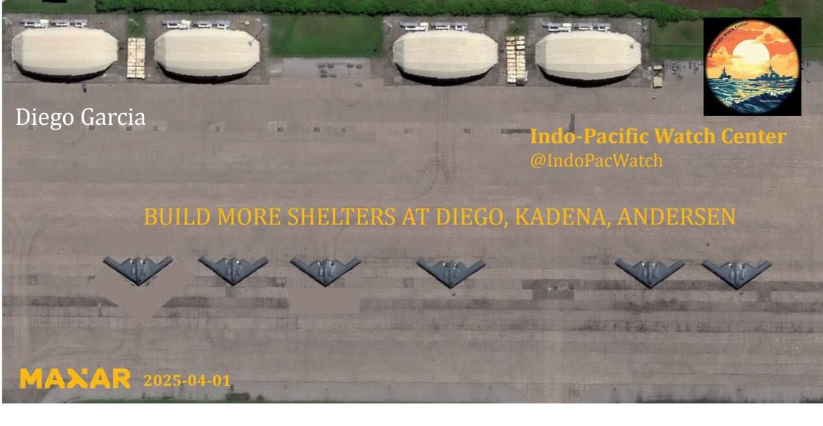 Спутниковое фото MAXAR: видны шесть американских бомбардировщиков B-2 на базе Диего-Гарсия в Индийском океане.