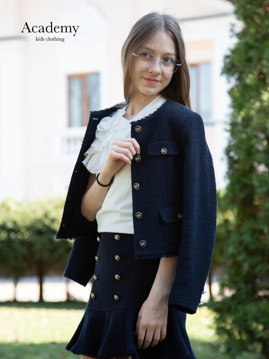 ✨ Элегантность и стиль для юных модниц! ✨ Этот шикарный образ из коллекции Маленькой Леди создан для тех, кто ценит классику с современными нотками 🎀 🩵 Безупречный стиль: Жакет и юбка из твидовой ткани с декоративными золотыми пуговицами создают благородный и элегантный образ. ⠀ 😍 Комфорт и удобство: Лёгкая футбллка с цветочной деталью добавляет нежности, а свободный крой позволяет чувствовать себя комфортно весь день. ⠀ 😎 Актуальный тренд: Классический тёмно-синий цвет в сочетании с белым — идеальный выбор для школы, мероприятий или прогулок. Будьте стильными в любое время! 💙✨ Вы всегда можете связаться с нами, если у вас возникнут вопросы 🫂 Instagram: academykids.store Telegram: academykid Сайт: academystore.ru Тел: + 7 (938) 081-00-82 ⠀ Ждем вас по адресу: г. Нальчик, ул. Идарова 172, 2 этаж. Ежедневно 11:00 - 19:00 ⠀ #kidsfashion #kidswear #kidsmodel #kidsphotography #style #kidstyle #детскаяодежда #дети #нальчикодежда #нальчик #academykids