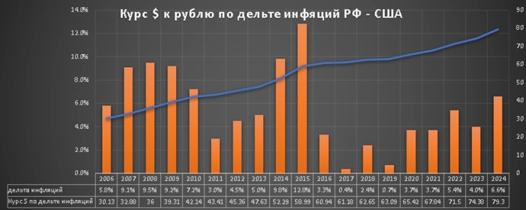 У части российских инвесторов, державших доллары в 2014 году или в 90е есть искажение восприятия о постоянном обесценении рубля, но на длинном интервале курсы, как правило, отражают разницу в инфляции, что в целом подтверждается за последние годы.