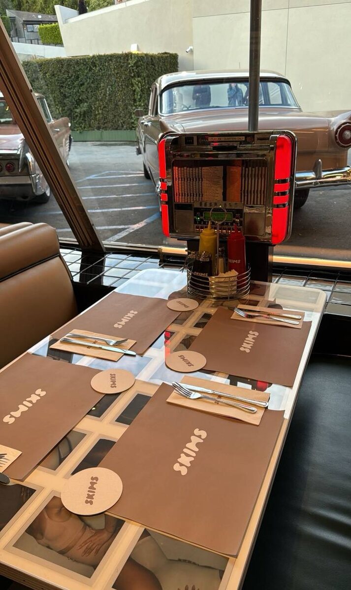 В честь открытия нового флагмана Skims Ким Кардашьян организовала поп-ап кафе знаменитой Mel's Drive In, которая работает с 1947 года! В меню вредные хиты: молочные коктейли, бургеры, панкейки и тд.
