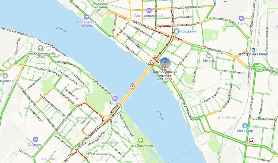 Сразу несколько аварий стали причиной жуткой пробки в Костроме 2 апреля. Прямо сейчас автомобили не могут сдвинуться и на десять метров на мосту через Волгу.
