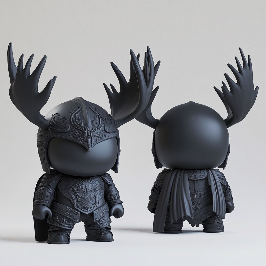 Создано на основе запроса: Blind Box Style, helmet with moose horn in black with details in clean background, chibi,Delicate
