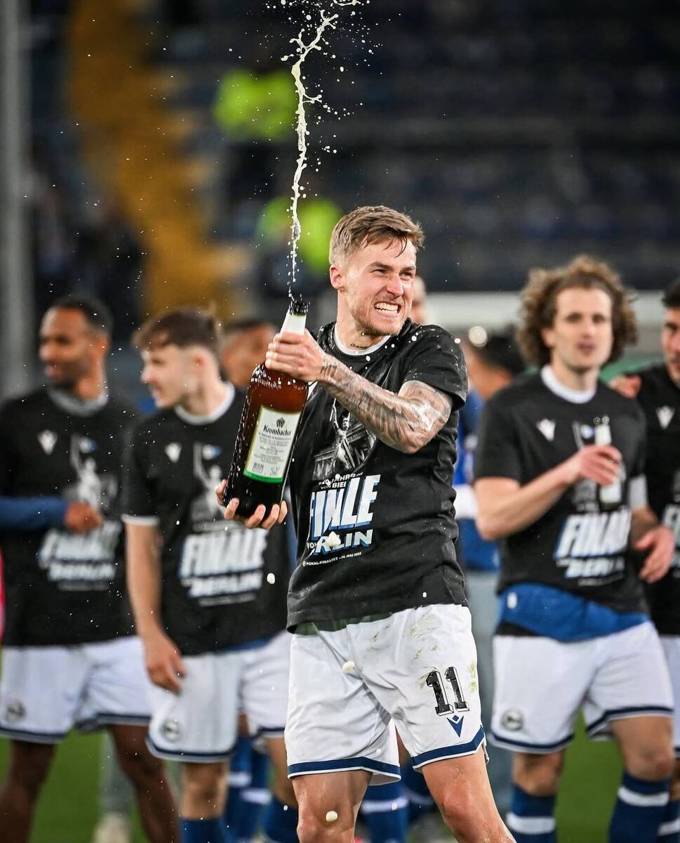 Они уже взяли для себя титул! 🇩🇪 Клуб из третьей лиги Германии выбил Байер🤯 Игроки Арминии с болельщиками бурно отпраздновали свою победу над Байером и выход в финал Кубка Германии 🇩🇪 Арминия сыграет с победителем пары Штутгарт-Лейпциг. ➡️ Подписаться на ФутХайп