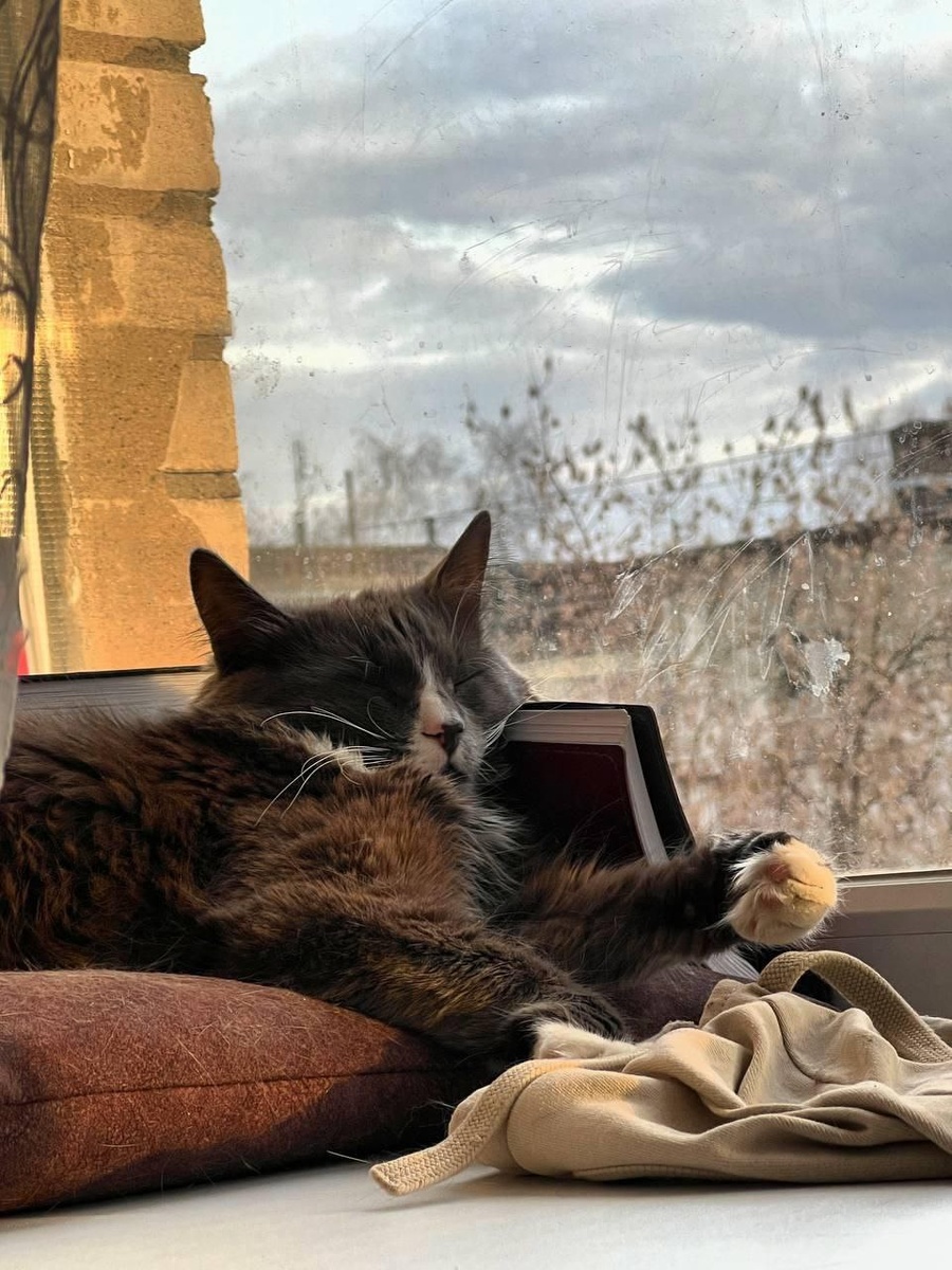 На коротком видео Барсик и Маркиза наслаждаются тёплыми солнечными весенними ваннами.