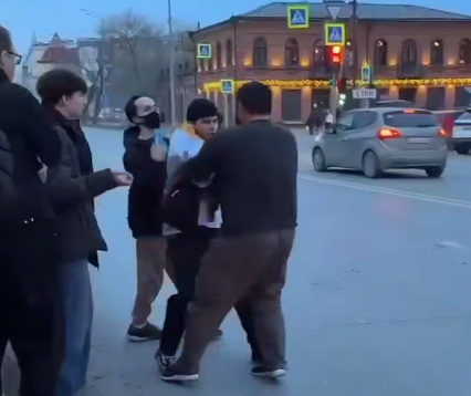 Иноземец таксист вышел из авто и раскидал подростков: Припечатал одного прямо с флагом Империи РФ к своему авто.
