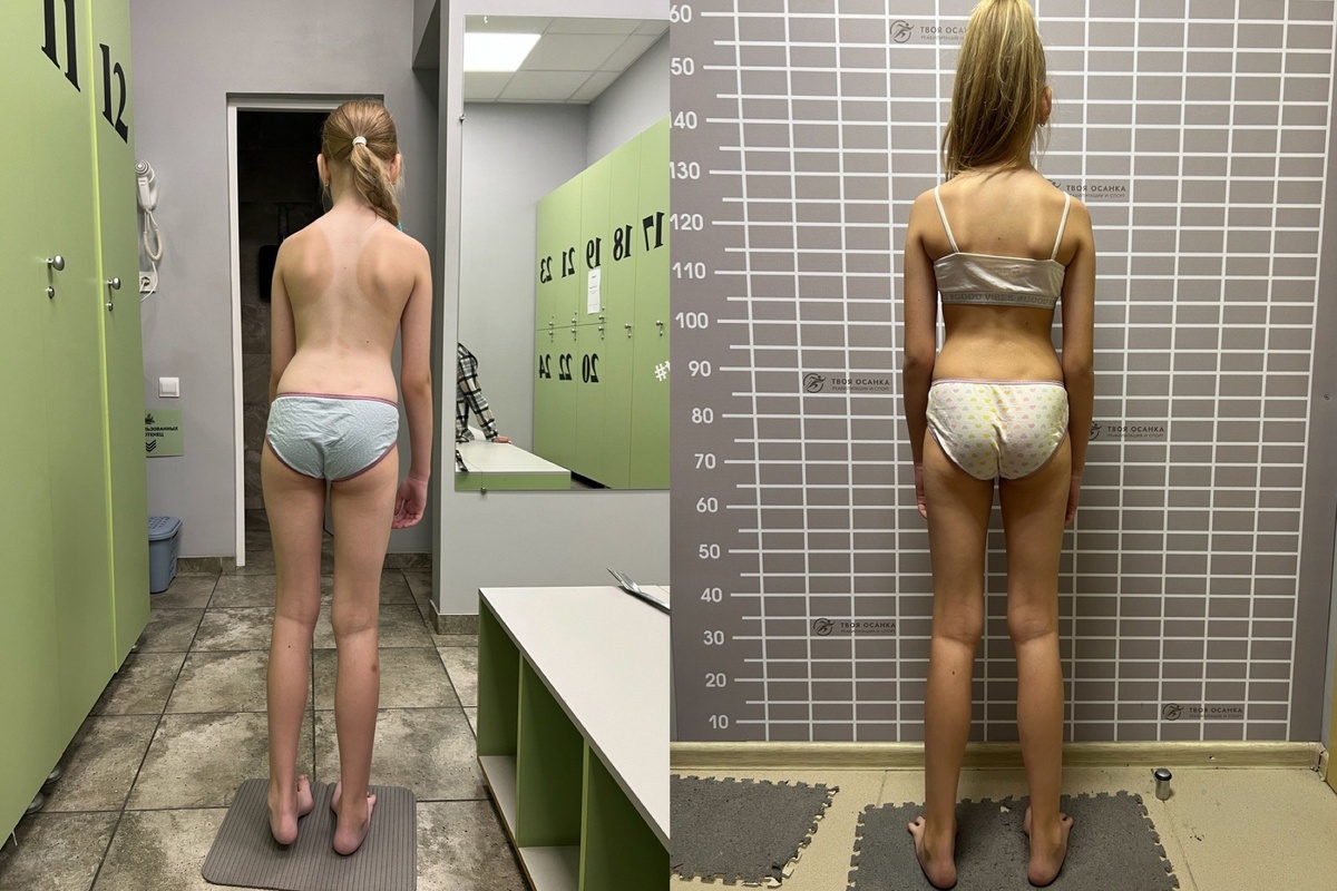 Продолжаем рассказывать о наших подопечных. Девять месяцев назад мы начали работать с Катей. Девочку привела мама и проблемы у ребенка были большие: укороченные ахилловы сухожилия и подошвенные фасции, тяжело было даже просто стоять на месте, в результате этого нарушен паттерн шага, все сопутствующие проблемы в виде перекоса таза, искривления позвоночника и пр. - Катя практически не опиралась на левую ногу, что вы можете видеть на фото девятимесячной давности, ребёнок не мог ровно стоять, ходил только на носочках. И тут нужно вспомнить, что буквально недавно мы с вами говорили о том, как нужно внимательно следить за своим ребенком: как он ходит, бегает, сидит и стоит. Ведь очень многих проблем можно избежать, если заметить только первоначальные нарушения. Вернёмся к Катюше - проблему мама к сожалению заметила достаточно поздно, когда уже встал вопрос об операции. Врач дал полгода на попытку что-то изменить без оперативного вмешательства. Когда Катя к нам пришла, у нас оставалось уже