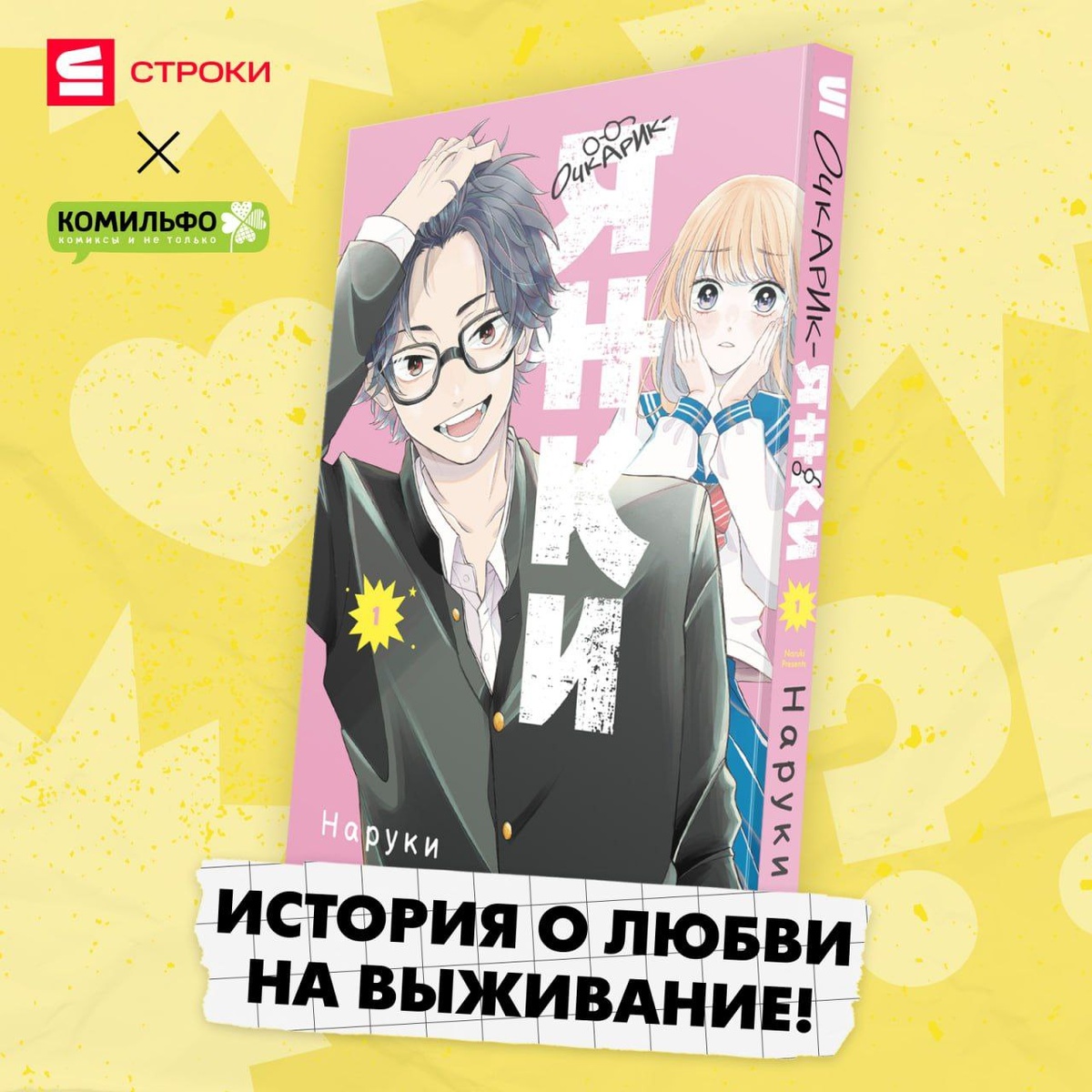«Очкарик-янки. Том 1» — скоро предзаказ! Настало время чуть подробнее рассказать про каждую серию грядущей манги от Строк! И начнём мы с «Очкарика-янки». В прошлом Момосэ была страшненькой растяпой, над которой все только и делали, что насмехались. Особенно её донимали хулиганы. Перейдя в старшую школу, она радикально сменила образ (впрочем, быть растяпой не перестала) и теперь старается начать новую жизнь — жизнь, в которой нет места ненавистным янки! И вот она встречает Итикуру — красавца, отличника и образцового ученика. Но вот незадача: раньше этот пай-мальчик был отпетым янки! Но бывают ли бывшие хулиганы? И сможет ли Итикура доказать Момосэ, что исправился? И сможет ли сама Момосэ забыть о своей ненависти к янки ради большой любви? Узнаем уже совсем скоро в новой романтической серии «Очкарик-янки» от Наруки! Параметры издания: • мягкий переплёт с суперобложкой; • формат 135x190 мм; • 176 страниц. Серию уже можно начать читать в цифровом виде на сервисе Строки, а совсем ск