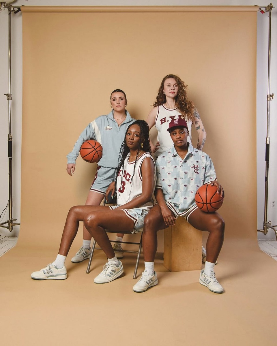 Крутейшее сочетание голубого и бордового в капсуле Адидаса для проекта Хуп Йорк Сити о женском баскетболе и искусстве