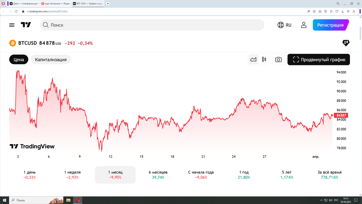 Курс биткоина: по данным сайта Binance на 2 апреля, 1 биткоин равен $84 611,72. За последние 24 часа цена криптовалюты изменилась на 0,62%. 1 Курс рубля: