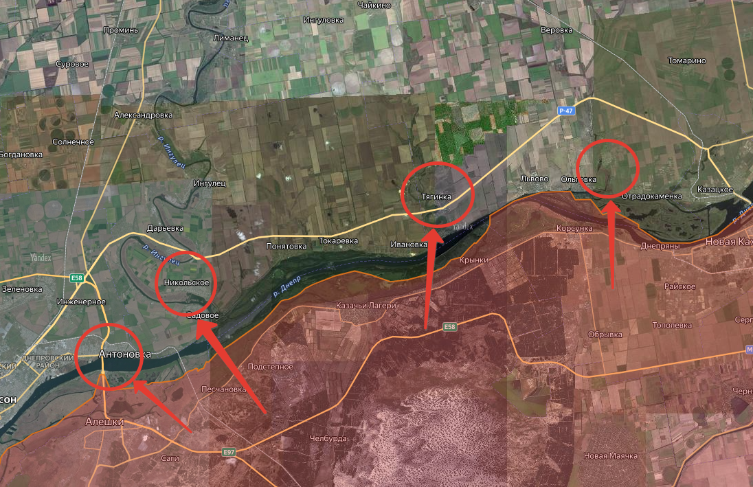 Российские подразделения нанесли удары по живой силе и технике ВСУ в районах населённых пунктов Тягинка, Бургунка, Никольское, Антоновка и Днепровское в Херсонской области. Согласно информации, противник также потерял три автомобиля, станцию радиоэлектронной борьбы и склад боеприпасов.