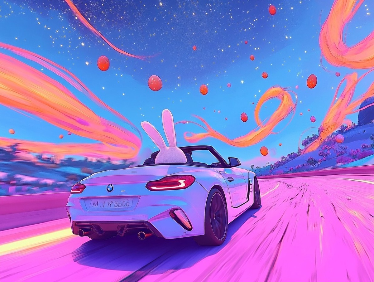 Создано на основе запроса: a driving bunny from the back in the driver seat, orange #FF5000 color scarf flying in the wind --- Автоперевод: Вождение кролика сзади на сиденье водителя, Orange #FF5000 Цветный шарф, летящий на ветру Отлично вышло? 🤔 https://dzen.ru/id/65c0c65c86e4f837c27b24d7 #ИИ #AI #нейросеть #midjourney #art