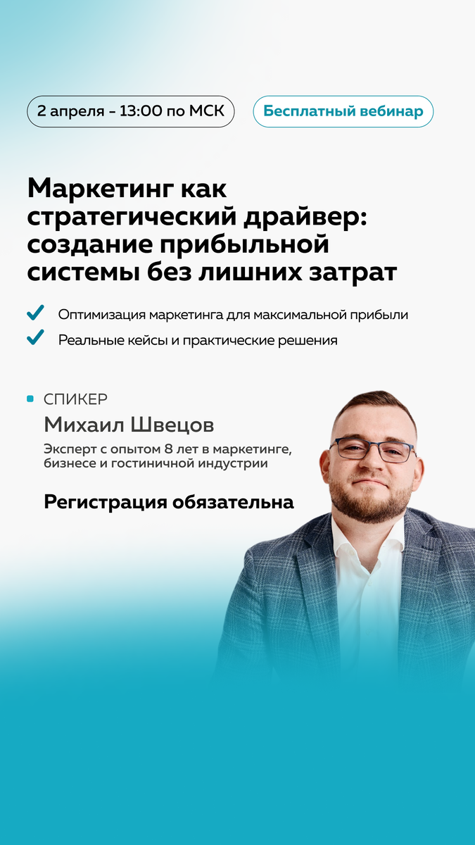 Как сэкономить на маркетинге и не потерять клиентов? Многие компании ошибочно полагают, что чем больше денег вложить в маркетинг, тем выше продажи. На самом деле эффективный маркетинг – это стратегия, а не просто бюджет. 💡 На бесплатном вебинаре 2 апреля Михаил Швецов, основатель MIROTEL MANAGEMENT, расскажет: