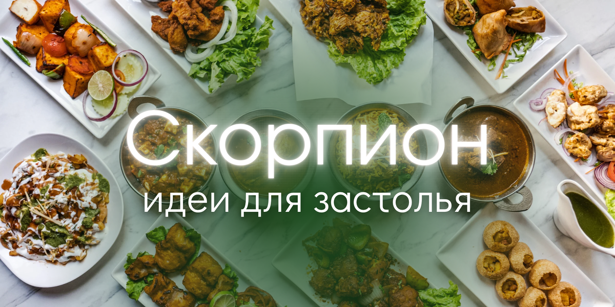 Скорпионы (24 октября - 22 ноября) - самые загадочные и страстные гурманы зодиака. Их идеальное застолье должно будить чувства: острые, пряные вкусы, необычные сочетания и элементы игры. Предлагаем вам концепции и рецепты, которые по-настоящему впечатлят этот водный знак. 🔥 Идеи для незабываемого застолья 1. Ужин в стиле "Огненная Мексика" - с перцем чили, текилой и шоколадом с перцем 2. Таинственный ужин при свечах - с блюдами-сюрпризами и закрытыми глазами 3. Морепродуктовая вечеринка - устрицы, омары, мидии с острыми соусами 4. Дегустация экзотических блюд - необычные специи и редкие ингредиенты 🍽 Страстные рецепты для Скорпионов 🌶 Огненный гуакамоле с креветками Ингредиенты: - 2 спелых авокадо - 1 свежий перец халапеньо - 1 ч.л. кайенского перца - Сок лайма - 200 г тигровых креветок - Чипсы из тортильи Приготовление: Разомните авокадо с перцем, добавьте специи. Обжарьте креветки на раскаленной сковороде. Подавайте с чипсами. 🦑 Кальмары в чернильном соусе Ингредиенты: -