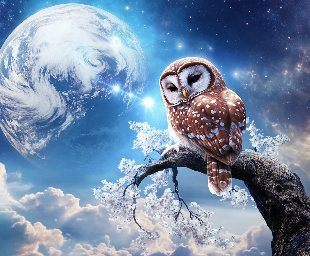 Создано на основе запроса: the stars are projectors of fiber optic floral owls projecting their lives down to this planet earth