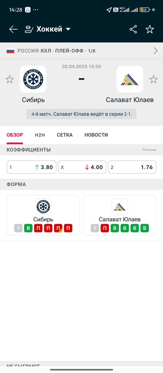 Очень много сил отдали Сибирь в прошлой игре ,выиграли 2-0 Сегодня думаю хозяева начнут так же как и прошлую игру,но думаю не хватит их больше ,Легионеры Уфы не могут молчать больше одной игры ,у Сибири отлично играют вратари весь сезон ,это наверно 90 процентов заслуга что Сибирь попала в плей-офф ,но с такой атакой как у Уфы очень тяжело надеется только на вратарей ,у Сибири в защите бардак ,так что думаю сегодня Уфа забьет минимум 3 года ,и наверно поведет в серии 3-1 ,но посмотрим в плей-офф все очень не предсказуемо
