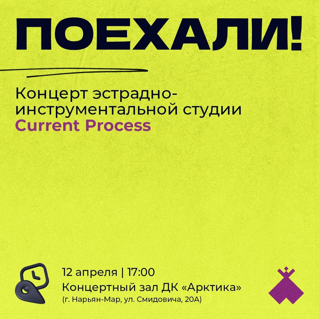 🚀 Концерт «Поехали!» (0+) 📍12 апреля в 17:00 📍Концертный зал ДК «Арктика» (г. Нарьян-Мар, ул. Смидовича, 20А) 💸от 200 руб 12 апреля 2025 года у жителей Ненецкого автономного округа появится возможность прикоснуться к «звездам»! В ДК «Арктика» состоится концерт эстрадно-инструментальной студии Current Process. Во время концерта зритель услышит знакомые композиции и абсолютно новые авторские произведения коллектива. Также на сцене выступят: фолк-группа Чёйно Бат, участники школы танцев Lu Dance Family и этно-коллектив Хаерако Сей. Билеты можно приобрести в кассах ДК «Арктика» или по ссылке. 🥰 Не забудьте подписаться на канал