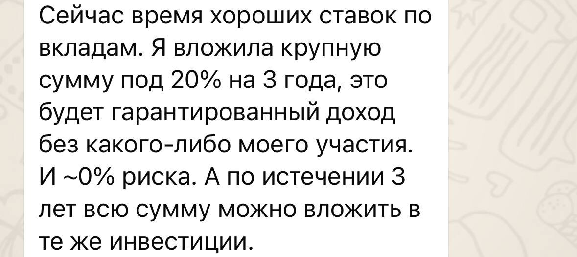 Самая распространенная ошибка с банковскими вкладами Логика такая: Сейчас хорошие ставки по вкладам. Поэтому положу пока деньги под 20% годовых, рисков почти никаких и гарантированная доходность. А потом когда закончится вклад, переложу уже деньги в инвестиции. Объясняю, чем опасна такая стратегия: 1️⃣ Надо помнить про налог на доход по банковским вкладам. Сейчас не облагаемая сумма дохода по ним - 210 тыс. рублей. Все, что выше, будет идти за вычетом 13-15% НДФЛ. Поэтому держать крупную сумму (больше 1 млн рублей) в банке становится невыгодно. Для сравнения: инвестировать в ценные бумаги можно так, чтобы вообще не платить налоги (абсолютно законно). 2️⃣ При пополнении вклада в банке никаких налоговых вычетов не предусмотрено. В инвестициях можно получать еще по 13% от суммы пополнения счета. Недавно показывал пример участницы клуба, которая получила 40 тыс от государства. И так можно делать каждый год. А это фактически +13% гарантированной доходности. 3️⃣ Когда вклад закончится и