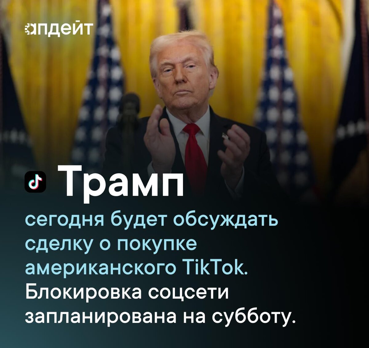 Трамп сегодня будет принимать участие в обсуждении продажи американского TikTok. Ранее президент отсрочил блокировку соцсети на 75 дней, однако в эту субботу срок уже истекает.