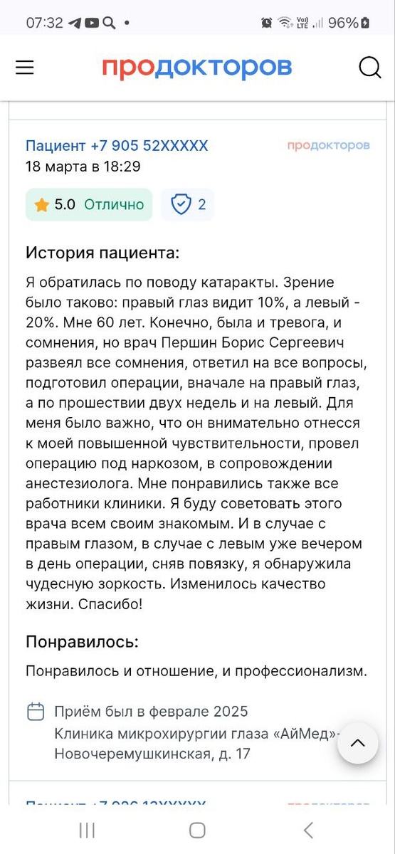 У меня очень развита эмпатия - это ни хорошо, ни плохо, это качество. Когда я работал в центре Димы Рогачева, мне было тяжело видеть чужие страдания, с которыми никак не можешь помочь. Не особо понимая этого сам, я закрывался от этих эмоций и занимался своим делом - помогал детям со злокачественными заболеваниями сохранить зрение. В тот момент я не знал, сколько занимает у меня сил потребность "не чувствовать чужую боль". Когда я работал в Эльвизусе, я понял, что эмпатия - это мой орган чувств, с ним можно значительно эффективнее понять как помочь человеку. Недавно у меня была взрослая пациентка, которая очень боялась любых предметов около глаз, за каждым аппаратом она сидела очень плохо. У неё были почти бурые катаракты с обеих сторон. Я не стал ставить ей хрусталики с продленным фокусом или мультифокальные, потому что она поджмуривалась во время абсолютно любых измерений. Оперировал оба глаза под наркозом. По операциям всё штатно, горжусь я тем, как смог построить общение с э